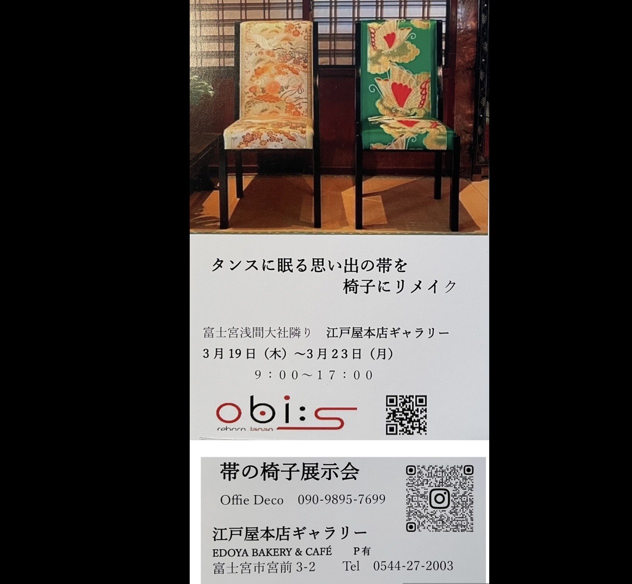 2026年3月・5月「タンスに眠る思い出の帯を椅子にリメイク」(富士宮・江戸屋本店ギャラリー)
