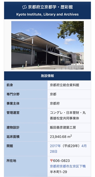 京都府立大学に隣接し、北山エリアに位置するこの歴彩館は、国宝『東寺百合文書』を始め100万点の資料を研究管理する、京都府の施設です。